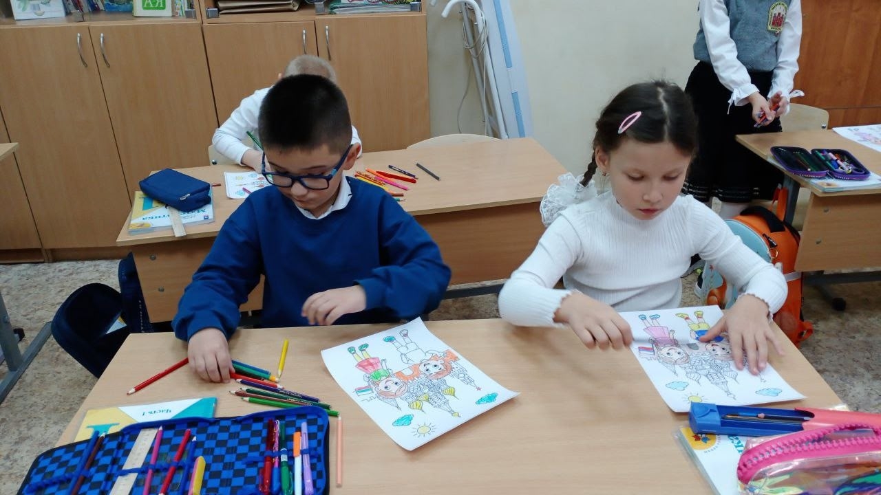 На занятиях ребята с интересом слушали историю Смутного времени, рассмотрели репродукцию знаменитой иконы и нарисовали свои рисунки на тему дружбы и помощи.