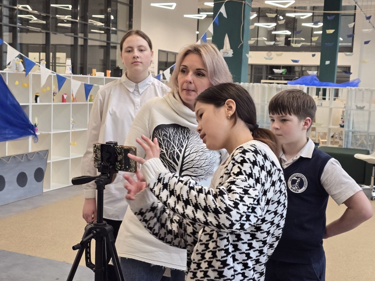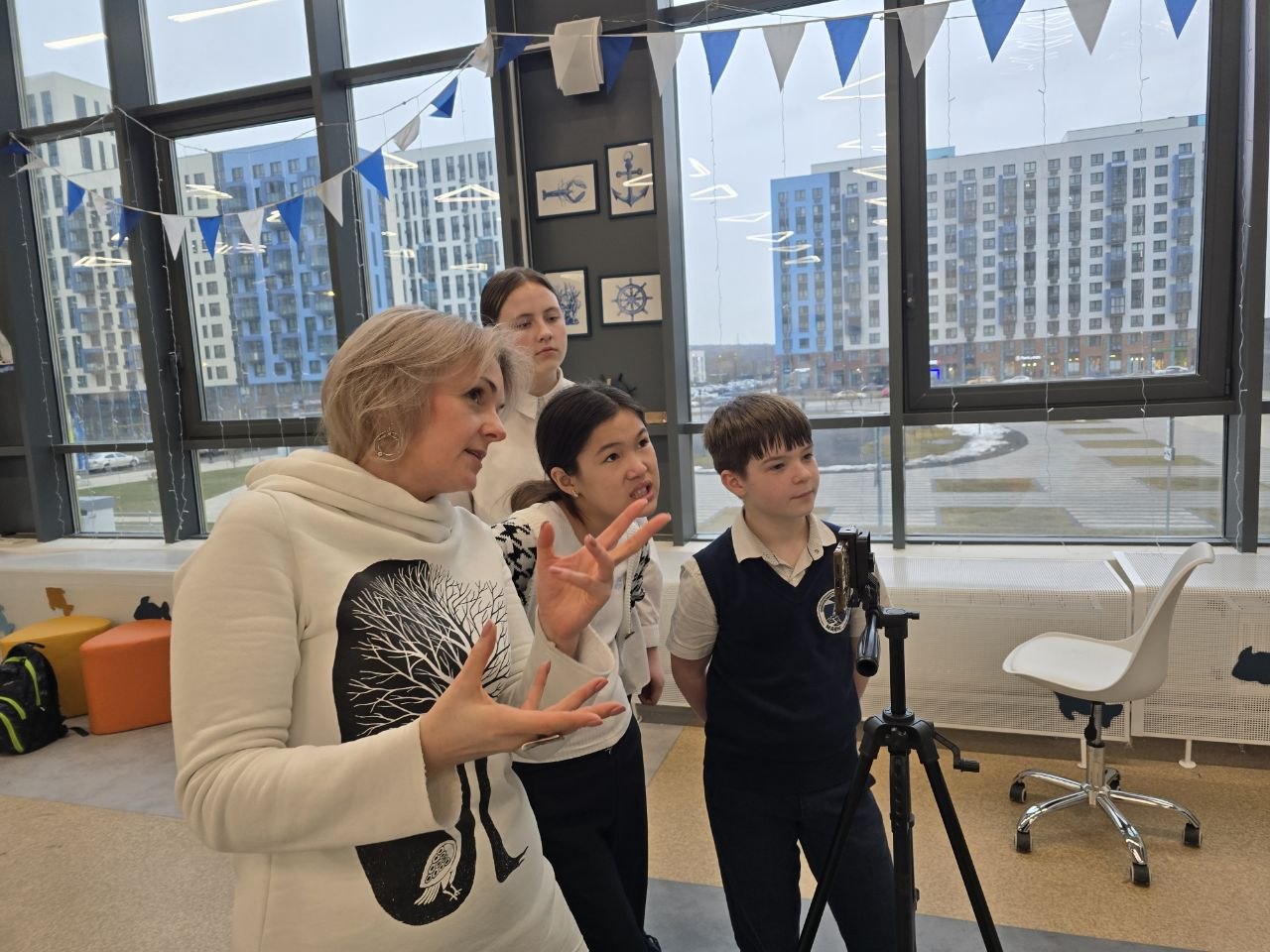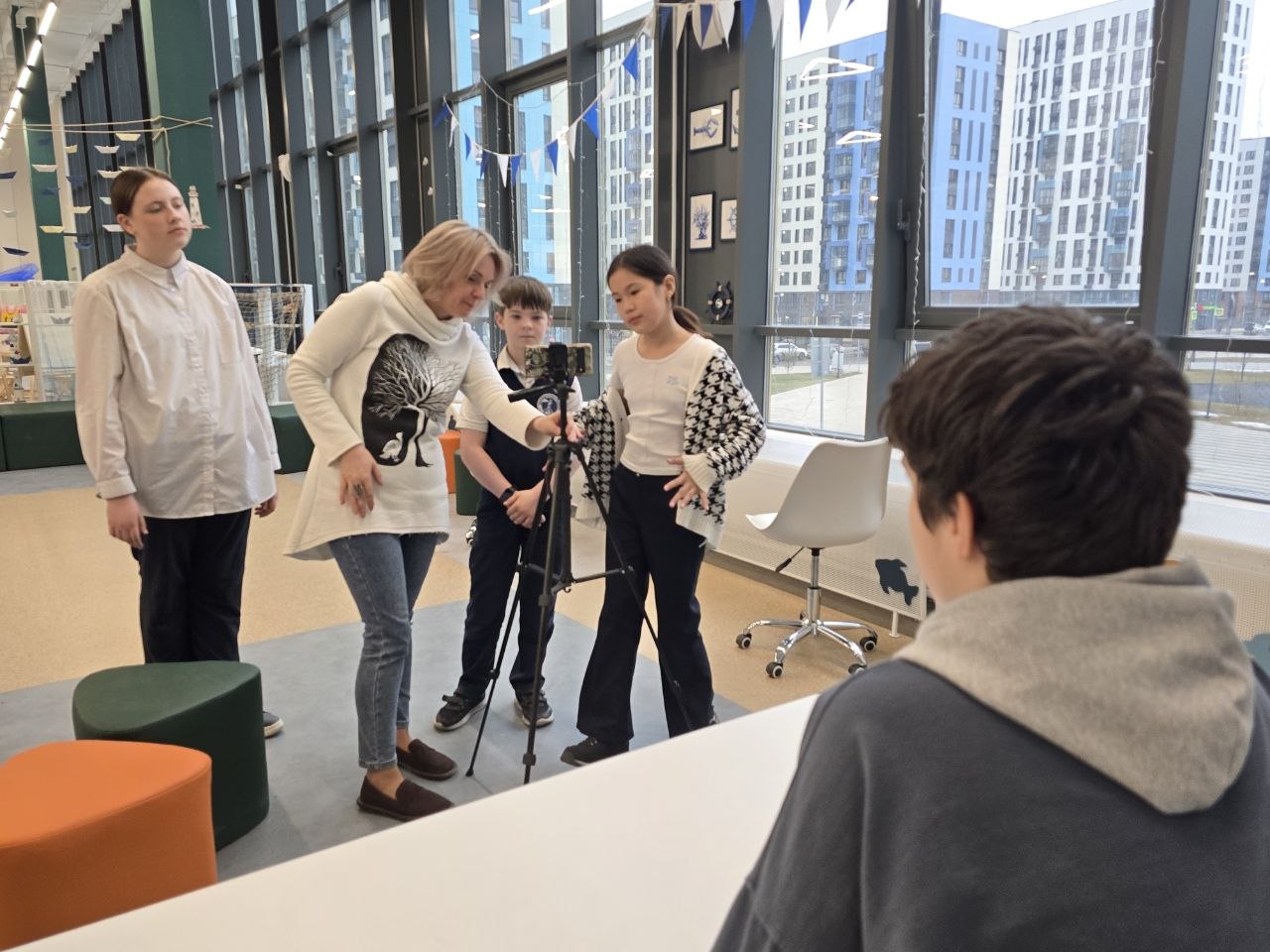 Шестое занятие обучающей журналистской программы «Честное слово» в стенах Ямской школы посвятили работе в студии. Дикторский голос, размещение ведущего в кадре, значение объектов за его спиной – все эти мелочи важны для построения красивой картинки на экране.