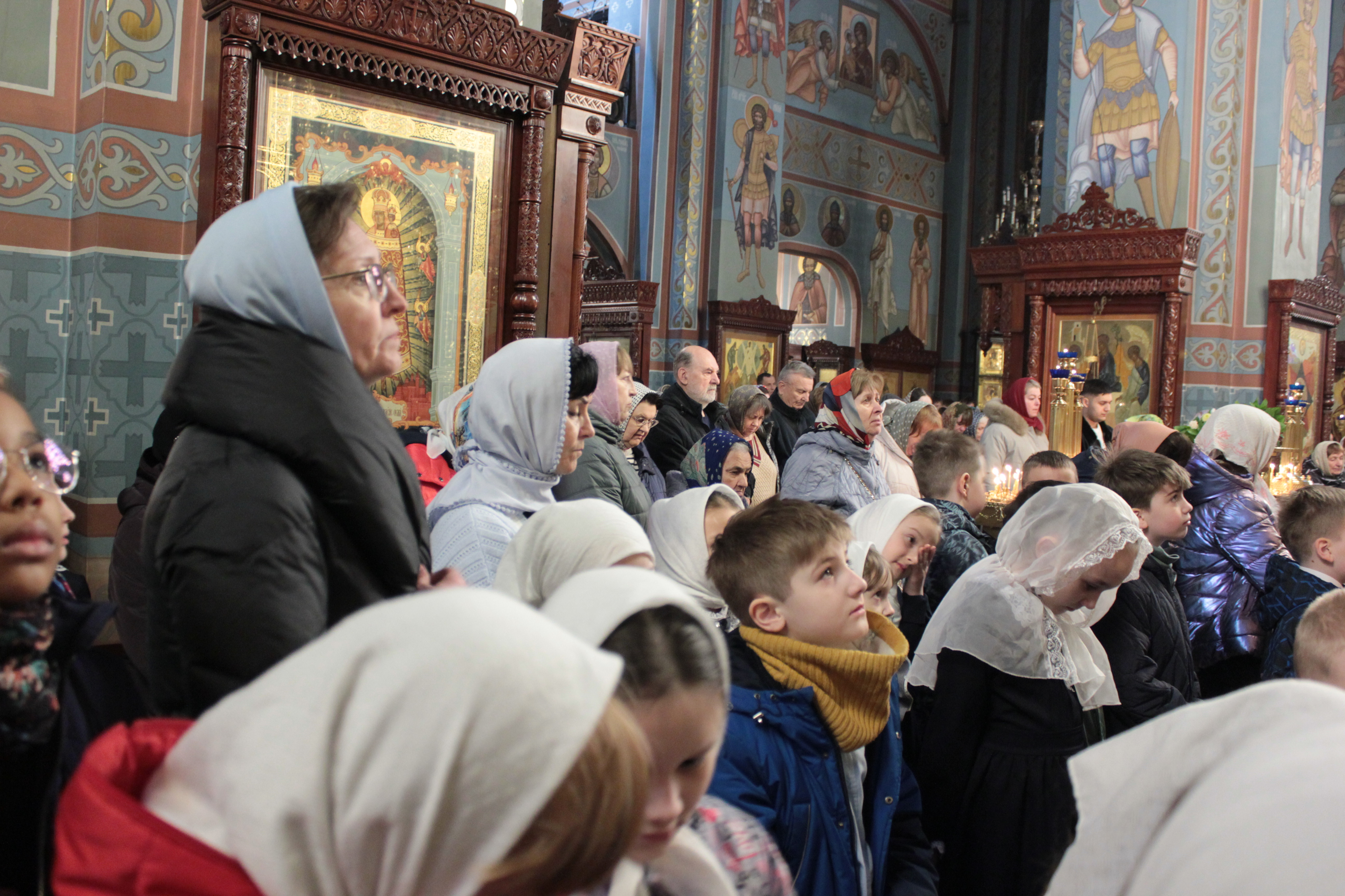 В Соборе всех святых, в Земле Русской просиявших, дети и взрослые исповедовались и причастились Святых Христовых Тайн.